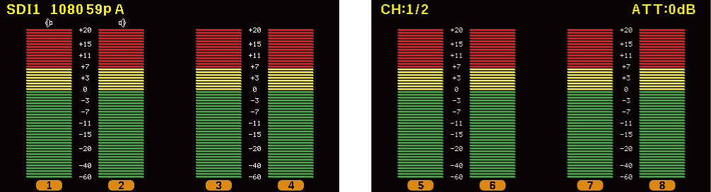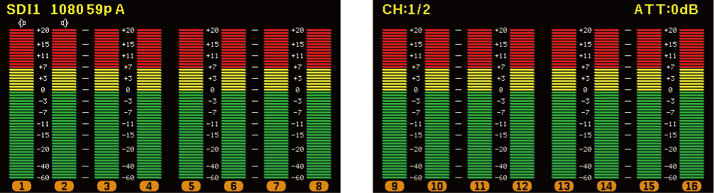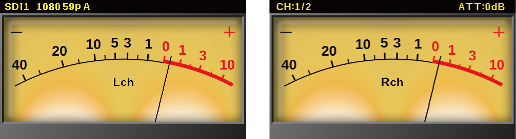 針式VUメータ表示、バーグラフ表示(53セグメント-60-+20dB)