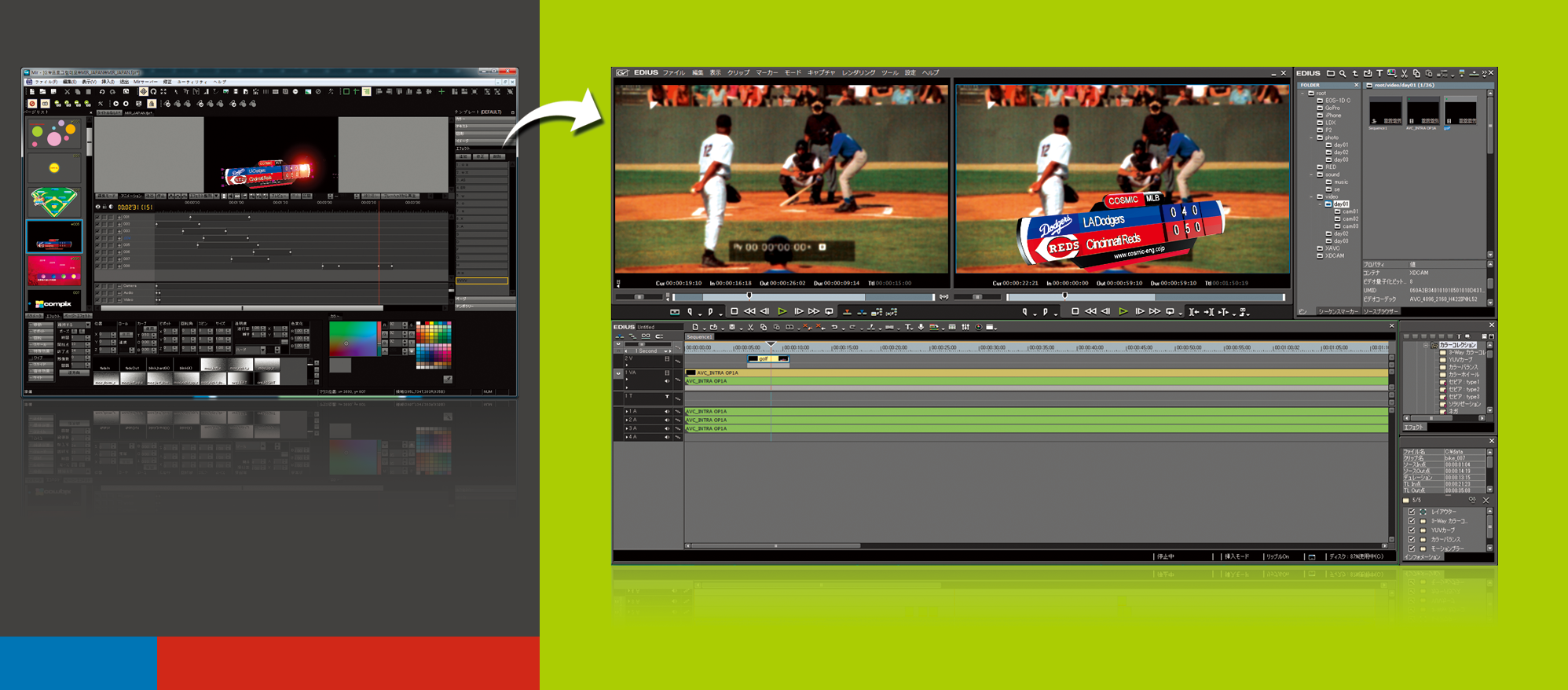 ノンリニア編集機での合成作業にもお役立ていただけます。CoCo3Dで制作したアニメーションもそのまま反映されます。