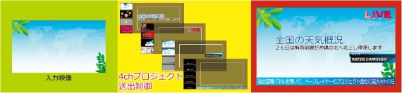 送出管理パネルを用いて、ベースレイヤーのプロジェクト含むに最大4chの任意プロジェクトとの合成送出や個別送出が可能です。