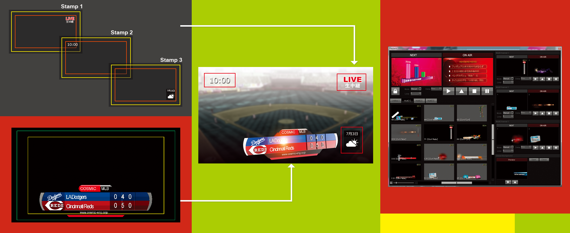 リモートコントロールBOX、キーフレームアニメーション、マルチチャンネル送出制御、Stamp(3レイヤー送出制御)、