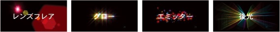 レンズフレア、ゴッドレイ(ボリュームライト)、グロー、パーティクルアニメーションを 制作出来るオプションです。