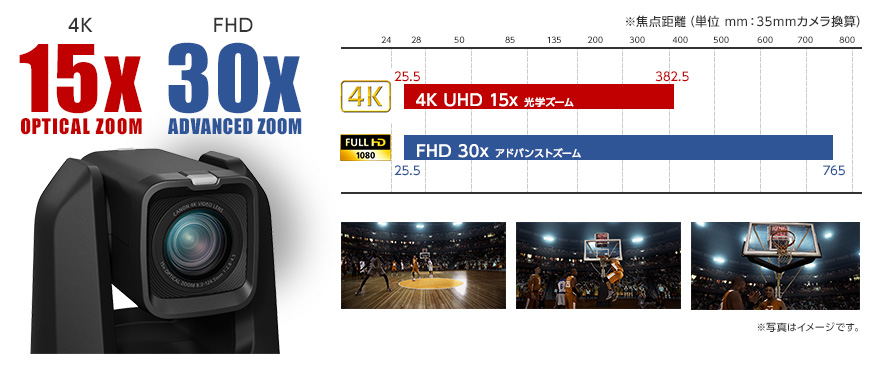 FHD時は4Kセンサーを活かし、画質を保持したまま最大約30xアドバンストズームが可能。