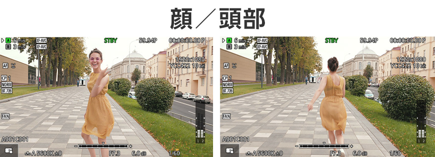 頭部検知では、後ろ姿にも対応し、スポーツなど被写体の動作が激しい撮影でも、粘り強くピントを追従します。