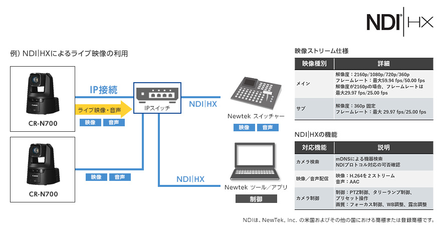 ■映像制作や放送の現場で定評のあるNDIに対応しているため、 NDIプロトコル対応の機器を用いたシステムを構築可能です。