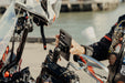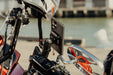本体は耐水性に優れた頑丈なアルミ製で、ボールにはゴム素材を採用。ヘッド部分の独自機構によりスマートフォンの揺れや振動を防止します。SlimLinkのハードロックによりしっかりとスマートフォンを固定し、取り外す際にはヘッド部分のプッシュボタンで簡単にロックを解除できます。バイク用グローブを装着した状態でも、スマートフォンの着脱が可能です。
