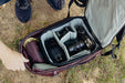 ピークデザイン製トラベルバッグと同様にモジュールシステムを採用し、カメラキューブやパッキングキューブを組み合わせてバッグをカスタマイズできます。18Lサイズは、メインコンパートメントに1.5ユニットまで収納可能。ミラーレスカメラとレンズ3−4本の持ち運びにぴったりなサイズ感です。機材を増やしたい場合は、1.5ユニットキューブの上に、Xスモールサイズのキューブを設置することもできます。