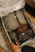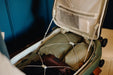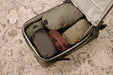 超高分子量ポリエチレン(UHMWPE)繊維を使ったコードフックシステムを採用し、荷物の量に合わせて中身を固定します。大きさの異なるポーチやキューブを収納しても、移動中にバッグの中身がずれにくい工夫を施しています。