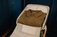 フロントパネル内側には、リップストップナイロンを採用した視認性の良い3つのジッパーポケットを備えています。さらにその裏側にはジャケットやシャツなどを収納できるジッパー付きの収納スペースがあり、紛失防止用のAirTagポケットとパスポートなど貴重品を入れる隠しポケットを備えています。