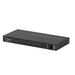 1U ラックマウント対応 (キット付属)、前面ブラックディスプレイパネル、背面に全ポートを装備。
