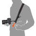 ストラップを縮めると身体にフィットしカメラの揺れを抑えて携行できるので、肩への負担が減ります。カメラを背中側に回しておけば、サイクリング時や前かがみになる状況でも邪魔にならずカメラをぶつける心配も減らせます。