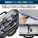 移動中のカメラの揺れを防止するため、機材固定ベルトを装備しています。このベルトは、内部で取り付け位置をスライド調節できるため、収納する機材のサイズや形状に合わせて最適な位置でしっかりと固定でき、大切な機材を保護します。