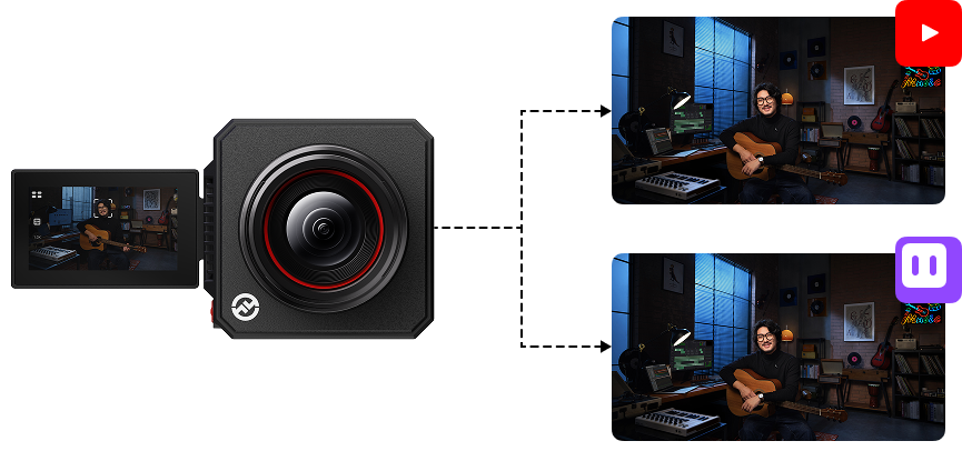 グリーンスクリーン、画像オーバーレイ、スキンビューティー、カラー補正など、豊富なクリエイティブ機能を搭載し、柔軟な配信オプションと直感的なアプリ・PC操作で、24時間365日、いつでもどこでもストリーミングをサポートします。