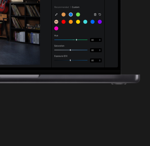 実際の配信データと経験をもとに開発された独自のAE(自動露出)とAWB(自動ホワイトバランス)アルゴリズムが、照明環境をリアルタイムに分析し、最適な映像調整を自動で実施。専門知識がなくても高品質な映像が簡単に得られます。AI Tuning OFF
