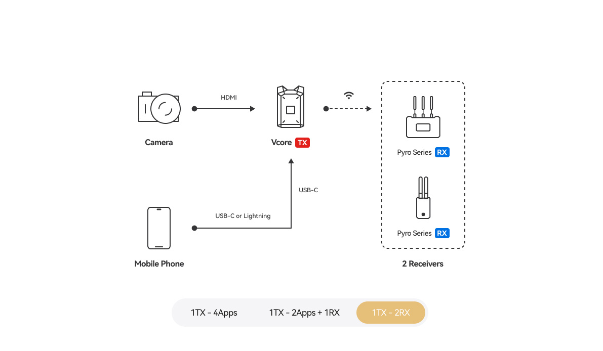 VcoreはAndroidおよびiOSデバイスと互換性があり、Pyroシリーズのレシーバーとの連携にも完全対応しています[3]。