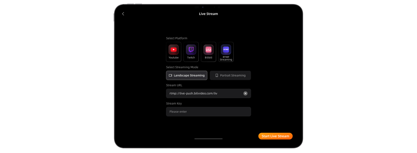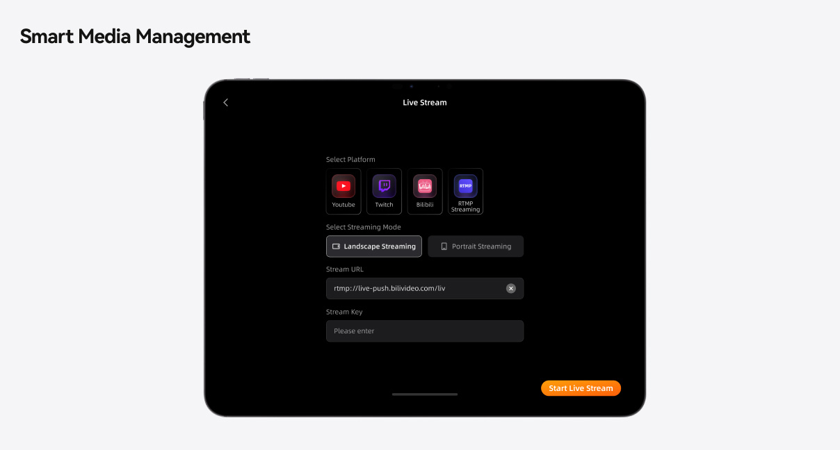 RTMP配信やSDKによるカスタム配信にも対応しており、YouTubeやTwitchなどの主要プラットフォームへのライブストリーミングが簡単に行えます。